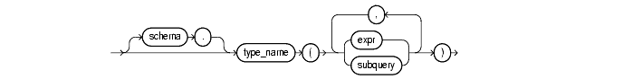 If type_name is an object type, then the argument list must be an ordered list, where the first argument is a value whose type matches the first attribute of the object type, the second argument is a value whose type matches the second attribute of the object type, and so on. The total number of arguments to the constructor must match the total number of attributes of the object type.