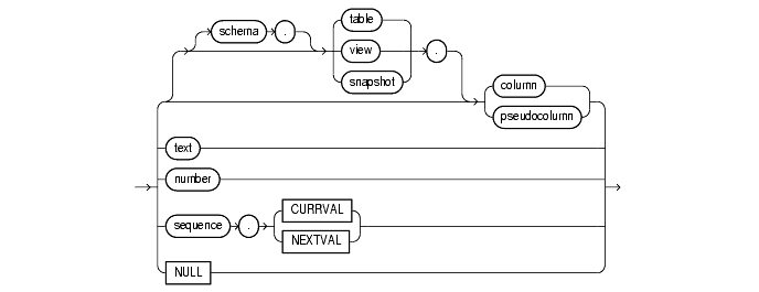 A simple expression specifies column, pseudocolumn, constant, sequence number, or null.