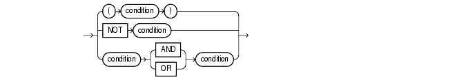 A condition specifies a combination of one or more expressions and logical operators that evaluates to either TRUE, FALSE, or unknown. You must use this syntax whenever condition appears in SQL statements in Chapter 7, "SQL Statements".