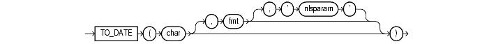 TO_DATE converts char of CHAR or VARCHAR2 datatype to a value of DATE datatype. The fmt is a date format specifying the format of char. If you omit fmt, char must be in the default date format. If fmt is 'J', for Julian, then char must be an integer.