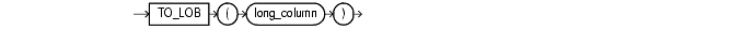 TO_LOB converts LONG or LONG RAW values in the column long_column to LOB values. You can apply this function only to a LONG or LONG RAW column, and only in the SELECT list of a subquery in an INSERT statement (see "INSERT").