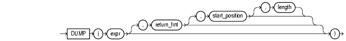 DUMP returns a VARCHAR2 value containing the datatype code, length in bytes, and internal representation of expr. The returned result is always in the database character set. For the datatype corresponding to each code, see Table 2-1.