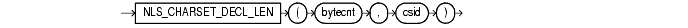 NLS_CHARSET_DECL_LEN returns the declaration width (in number of characters) of an NCHAR column. The bytecnt argument is the width of the column. The csid argument is the character set ID of the column.