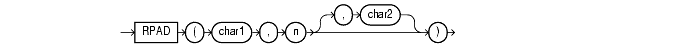 RPAD returns char1, right-padded to length n with char2, replicated as many times as necessary; char2 defaults to a single blank. If char1 is longer than n, this function returns the portion of char1 that fits in n.