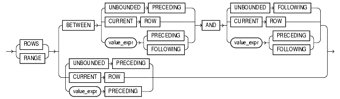 These keywords define for each row a "window" (a physical or logical set of rows) used for calculating the function result. The function is then applied to all the rows in the window. The window "slides" through the query result set or partition from top to bottom. You cannot specify this clause unless you have specified the ORDER_BY_clause. |