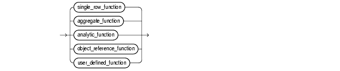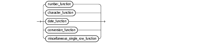 In the syntax diagrams for SQL functions, arguments are indicated by their datatypes, following the conventions described in "Syntax Diagrams and Notation" in the Preface of this reference. When the parameter "function" appears in SQL syntax, replace it with one of the functions described in this section. Functions are grouped by the datatypes of their arguments and their return values. The general syntax is as follows: