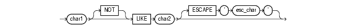 The LIKE operator is used in character string comparisons with pattern matching. The syntax for a condition using the LIKE operator is shown in this diagram: