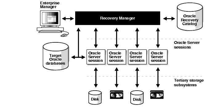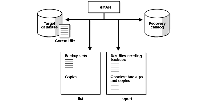 When you use RMAN with a recovery catalog, the RMAN environment is constituted by the following components:
