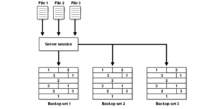 If you want to create multiple backup sets and allocate multiple channels, then RMAN automatically parallelizes its operation and writes multiple backup sets in parallel. The allocated server sessions divide up the work of backing up the specified files.