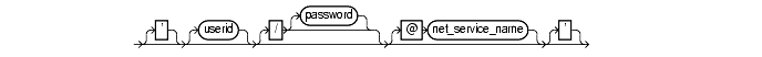 A sub-clause specifying the username, password, and net service name for connecting to a target, recovery catalog, or auxiliary database. The connection is necessary to authenticate the user and identify the database.