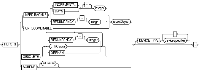 specifies the type of storage device. RMAN only considers backups and copies available on the specified device for its report. See "deviceSpecifier". |