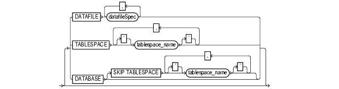 excludes the specified tablespaces from the database specification. |