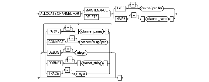 To allocate a channel in preparation for issuing a change or crosscheck command. The maintenance and delete options, which are completely synonymous, specify the device type appropriate for the file whose status you are changing.