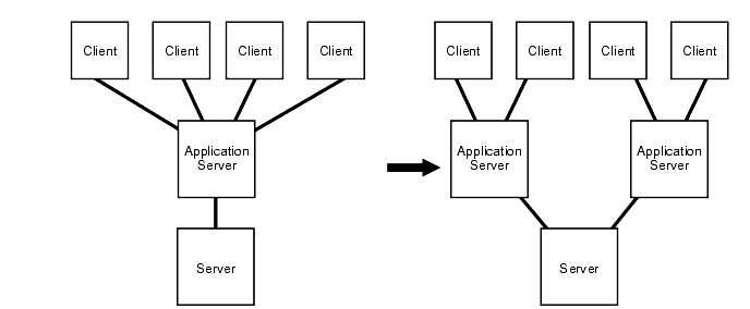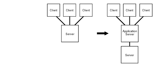 If your system runs with multiple layers, then consider whether moving from a two-tier to three-tier configuration and introducing an application server or a transaction processing monitor might be a good solution.