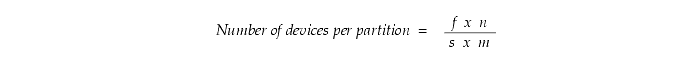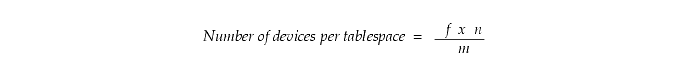 Calculate the number of partitions multiplied by the number of files in the tablespace multiplied by the number of devices per file. Divide this product by the number of partitions that share the same tablespace, multiplied by the number of files that share the same device. The formula is as follows: