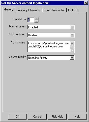 Configure your server by using the Set Up Server dialog box (Figure B-1). Here you make choices that affect the performance and security of your backups, such as setting the server parallelism, enabling concurrent devices, and adding or changing LSM administrators. You also use the Set Up Server dialog box to provide important company and product information that is required for registering your LSM products.