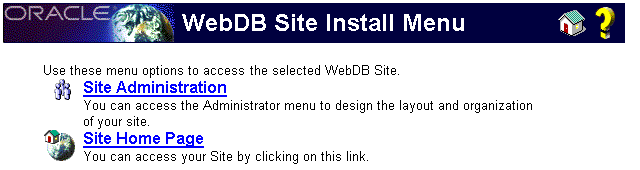 - In the WebDB Site Install Menu page, click Site Administration.