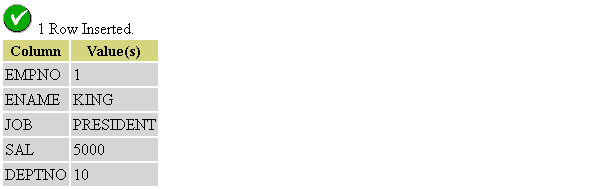 - Let's add some more data. Use the information in the following table to add more rows to TUTORIAL_TABLE. After completing the form for each row, click Insert New Row, and then Browse Table to return to the form to add the next row.