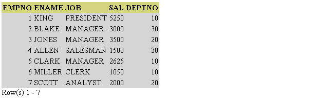 - Compare the salaries of the employees in Department 10 (KING, CLARK, and MILLER) with those that you noted down at the end of the previous exercise. Executing TUTORIAL_PROC has increased them by 5%.