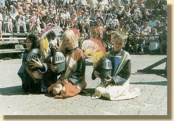 mit Lanzen und Schwertern kämpfen um die Gunst edler Damen, gewandte