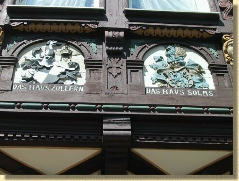 an der Südseite mit dem Zollern- und dem Solmser Wappen nach der