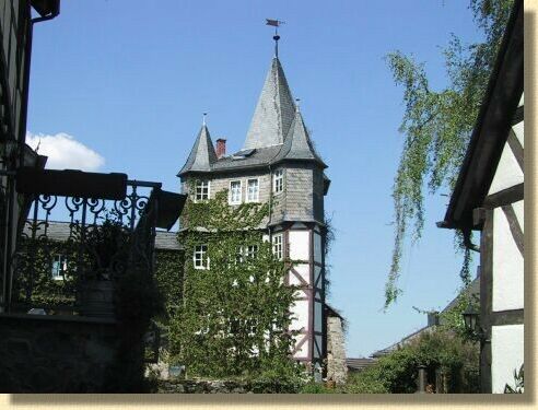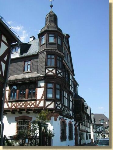 Teil Fachwerk mit dreitürmigen Dachgeschoss von 1845.