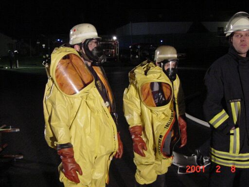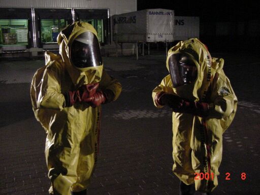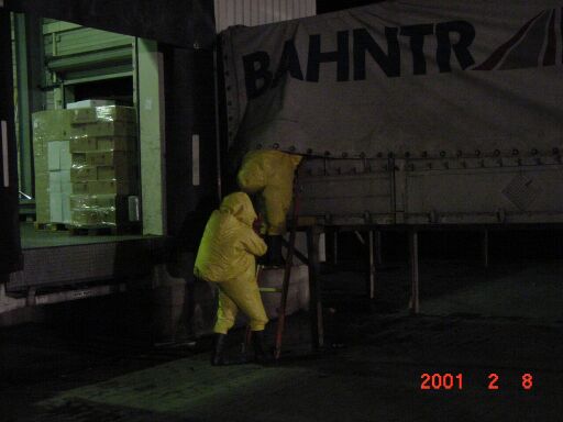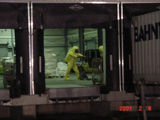 - Der Container wurde unter Chemikalienschutzanzug entladen.
