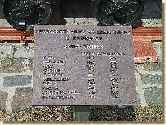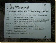 | In den Jahren 1830-1946 wurde Rot- und Brauneisensteingewinnung in der Gemarkung im großen Umfang durchgeführt. Die Grubennamen "Anna", "Würgengel" sind vielen heute noch ein Begriff. | |