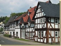 | Sehenswerte Fachwerkhäuser schmücken den Ortskern. Insbesondere hervorzuheben sind die Häuser: Mittelstraße 28 (Alte Dorfschule von 1684), Mittelstraße 2a (Glockengießerhaus), Mittelstraße 3/5 (Hess. Fachwerk mit rheinischer Auszier). | |