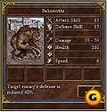 The behemoth is a great brute that isn't very fast but has a devastating melee attack. It is also very cheap for a seventh-level unit and very easy to acquire on the tech tree. Within three turns you can get the behemoth, provided you start with a goblin barracks. In turn one, build a wolf pen. In turn two, build the cliff nest. And in turn three, you can build a behemoth lair. And assuming the standard starting resources, you'll be able to do just that and still recruit the one behemoth immediately. Then go rampaging across the countryside while your fellow castle and dungeon players are running around with weak archers and harpies. The behemoth has a special attack where it reduces the target's defense by 40 percent. It is actually a very powerful ability that can quickly set up enemy creatures for terrible subsequent blows. Let's assume your one first behemoth runs into a stack of three pit fiends, which have a defense of 13 (both dwellings can be built in the same time, producing those exact numbers after completion). A normal attack from that one behemoth would do from 36-60 damage (assuming the behemoth's attack of 17 and a minimum barbarian hero attack skill of 4). On the next attack, that behemoth would do 50-83 damage to the pit fiends because their defense was lowered to eight. At minimum damage, one pit fiend is dead, and at maximum damage, the whole stack is vanquished, with the behemoth suffering at most 28 damage, assuming the behemoth attacked first. (For a full description of how attack and defense factor into combat, read the combat section of this guide.) The ancient behemoth is even more powerful, with nearly double hit points and slightly higher attack and defense. Moreover, the defense reduction ability jumps from 40 percent to 80 percent! Go for the behemoth within the first week and then conquer every mine you see to get the necessary resources to recruit ogres and cyclopes. This strategy will work well to ensure that you get a huge jump on the competition in terms of territory and mines claimed. Beware of the later game, though, when other towns' seventh-level troops come into play. Angels, devils, the titan, and dragons are all more powerful than the behemoth or ancient behemoth, although the defense reduction ability is always useful. In the later game, it sets up enemies from far ranged attacks by the cyclops kings. The ancient behemoth is not too expensive, although you'll want probably one or even two crystal mines to support it and the cyclops.