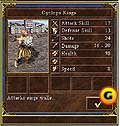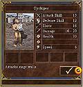 The cyclops is the second ranged unit available at the stronghold and is much more effective than the weak orc. The cyclops is the second-best ranged unit, with high attack and damage. The cyclops king gains incremental increases in attack and speed. Both types of cyclopes can attack walls during castle sieges as though they were catapults. Cyclops and cyclops kings attack as if they had the ballistics skill, which means they have a better than average chance to hit the wall they targeted and destroy them. Cyclops kings attack walls twice per round. This ability helps offset the barbarian hero's marginal chances of learning the ballistics skill. Building the cyclops cave is a cost-prohibitive endeavor because of the great ore and crystal requirements. The cyclops itself, though, is very cheap, although the cyclops king is an incredible 350 gold more! It might not be worth that much gold, but the cyclops king is a great ranged unit and should be a part of every stronghold force. However, given the choice between going up the behemoth path (wolf pen to cliff nest), or the cyclops path (orc tower to ogre fort), go with the behemoth track because it is actually cheaper. The ore and wood costs of the cyclops cave and ogre fort, respectively, are too high to be built in the first week, while the behemoth lair actually can be built that first week. But by the later game, definitely build up a large force of cyclops. Always be mindful of their hit points because they are rather flimsy for sixth-level troops. Bolster their defenses with stone skin and cast beneficial spells like precision and prayer to make them truly terrifying ranged attackers. Behemoth/Ancient Behemoth