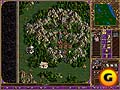 pick one): Starting towns: One necropolis Starting resources: 20W, 10M, 20O, 10S, 10C, 10Ge, 20000G Other towns: Two rampart towns and one castle town are on this map. The castle is located at the very far southwest corner of the map. One rampart town is in the middle of the map, while the other is located in the northwest corner. Notes: You should start this scenario with the necromancy amplifier because it will affect all your heroes. It will also make it easier for you to get vampire lords quickly. There is no underground to this map, so all your fighting and exploring is done above ground. However, you will start off on an island on the very northeast part of the map. There is one ship waiting by the shore, so take your strongest hero across the river to the mainland to the west and start killing weak wandering monsters. You'll want to build a shipyard early to get your other heroes across. Your starting heroes will begin at second or third level, giving a little of a headstart in power. There are two border guards on this map with artifacts you can thus take with you to the next scenario. One is located in the far northwest corner, above the rampart town, while the other border guard is located in the west of the map. There is also a prison behind this west border guard where you can free the hero Sandro, who is equipped to bolster your forces with even more skeletons. You need not destroy every town to win this scenario, but simply need to amass 2500 skeletons. Do so by any means necessary; make sure and have necromancy amplifiers at every town, make your heroes experts in the necromancy skill as quickly as possible, and even resort to recruiting creatures like centaurs and dwarves in order to convert them in your skeleton transformers. Also, when you encounter wandering monsters that begin to run away, never let them flee. Finally, keep the skeletons you've resurrected out of the action; you don't have any to spare, so keep them safe.