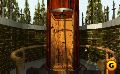Give the tree elevator time to travel all the way to the top (you'll hear a succession of those loud noises), then crank counter-clockwise to lower the pressure to zero (watch the gauge) and send the elevator back down. As soon as the gauge drops to zero, exit the cabin and go behind it (go outside, turn around, and click to the right of the cabin). When the elevator is flush with the ground, move inside and travel to a small underground room - and there you'll find the book that takes you to the Channelwood Age. To return to the surface, crank the valve in the room clockwise to increase the pressure and send the elevator upwards again.
