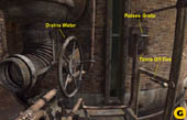 Then, set the Y junction valve to the lower branch (closest to the center). Throw the switch at the upper right, and a walkway grate (inside the boiler) should rise into position. Turn the valve on the pipe to the right to turn off the boiler. Now you can enter the boiler through the steel door around the other side. This will take you to Gehn's Laboratory.