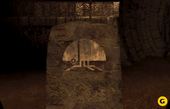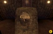 To get to the Moiety Gateway Room, you must get to the top of the Wahrk Gallows and find the secret passage in the prison cell. After you find the secret passage, follow the passage through the darkness by clicking straight ahead until you reach the end, an opening that looks out to the ocean. Click on the handle protruding from the wall on the left to turn on the light. Turn around and do the same with every light you encounter until you see a door on the left. Open it and walk down the passage until you get to a circular room with 25 stone slabs imprinted with images of animals.