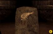 To open the gate, click on the stones in this order; fish, beetle, frog, sunner and finally the warhk.
