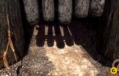 When you start the game, go to the main door to the antechamber of the Gate Room (the first one at the top of the stairs in front of the wooden bridge). Push the button to the right of the doorway four times to rotate the room four times. Turn around, step forward, and take the path to the left. Follow the stairs down all the way to the end. Turn left twice to face the locked gate. Click under the gate to crouch down and then straight ahead to go under it.