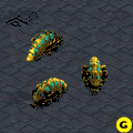 Maintaining a Reaver's supply of Scarabs is a task not unlike babysitting a spoiled child (yet far more expensive). The nuisance of micromanagement is a price you will be prepared to pay, however, after witnessing the fury of the Reaver in combat. A Reaver may hold up to five Scarabs. You may double this capacity by means of an expensive upgrade at your Robotics Support Facility, but you are not advised to do so unless you have more resources than you know what to do with - which will not often be the case. Reavers will auto-acquire enemy ground targets that approach within firing range, but will not pursue a target that attempts to flee. Reavers have a very slow rate of fire and can produce Scarabs as quickly as they can fire them off. Scarabs may be launched from extreme distances, easily extending beyond the range of virtually all other units and defensive structures. Only the Terran Arclite Siege Tank, in its immobile artillery mode, packs similar reach. Their long range makes Reavers ideal for swiftly eliminating enemy defensive emplacements.