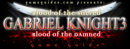 This comprehensive game guide includes everything you need to assist Gabriel and Grace in solving the elaborate mystery and completing the fantastic adventure game Gabriel Knight 3: Blood of the Sacred, Blood of the Damned. Search this guide for: