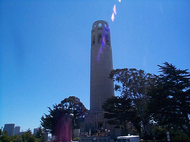 Coit Tower, a memorial to San Francisco's volunteer firefighters, sits at the top of Telegraph Hill.