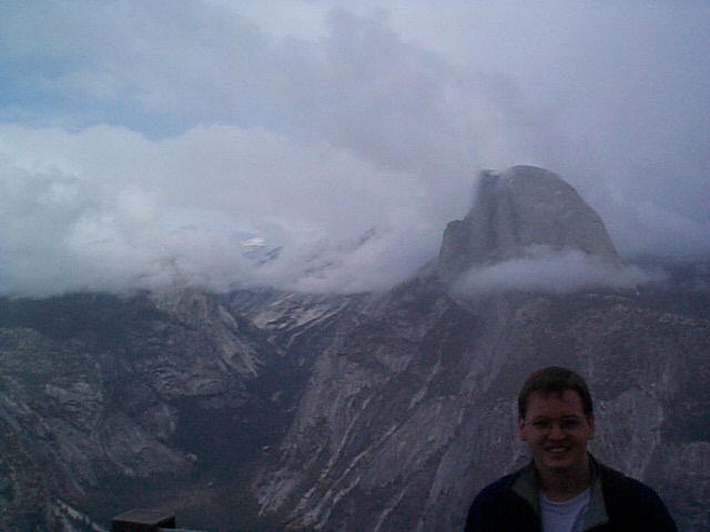 A picture of me at Glacier Point, with Half Dome in the background: