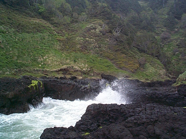 At Devil's Churn, the Pacific Ocean pounds the rocky coast: