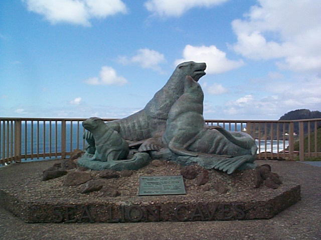 At the Sea Lion Caves, I took an elevator down to the world's largest sea cave, which is normally filled with sea lions. Unfortunately, the stormy ocean left only a few sea lions in the cave when I visited. At another nearby viewing point that normally features a couple hundred sea lions, one or two sea lions would occasionally jump onto the rocks before the rough ocean tossed them back in.