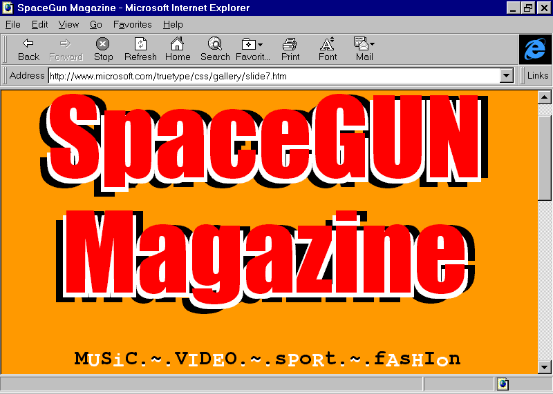 As an example, take a look at SpaceGUN Magazine, a fictional magazine featured in Microsoft's CSS Gallery. Using Microsoft Internet Explorer 3.01 with style sheets enabled, the presentation is certainly unique and eye-catching: