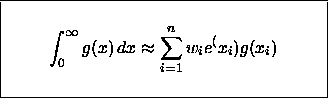 \fbox{\parbox{7.5cm}{\[ \int^\infty_0 g(x)\,dx \approx