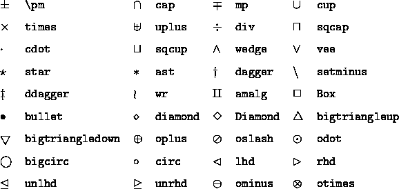 Für binäre Operationen stehen folgende Symbole zur Verfügung: