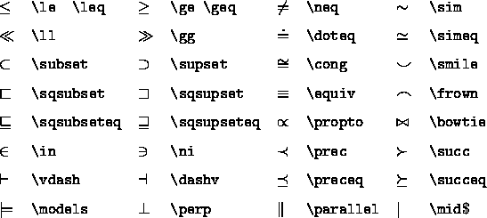 Die Negation einiger diesen Befehle kann durch das Voransetzen den Befehl \not erzielt werden, z. B. ist so \not\in zu erzielen und so \not=.