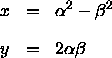 y &=& 2\alpha\beta \end{eqnarray*}}