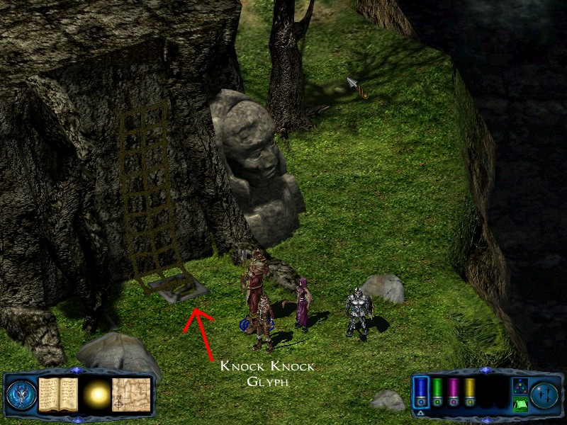 Once across the bridge turn directly south, following the tree until you find the glyph of knocking. Approach it and the word will speak itself. You will then enter the tree where you will speak to Beriand and Faeril.