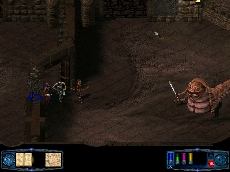 Head for the sceond room and descend the stairs to the area the signpost calls Bedlam Prison. When you arrive go through the more easterly door first to collect the Blade of Larceny and a quiver of arrows of speed. |